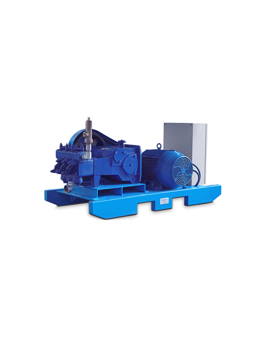 La Estación de Bombeo Eléctrica 420 de Triple Pistón cuenta con un motor trifásico de 30 HP, arranque eléctrico, transmisión por poleas y botón de emergencia para una operación potente y segura.